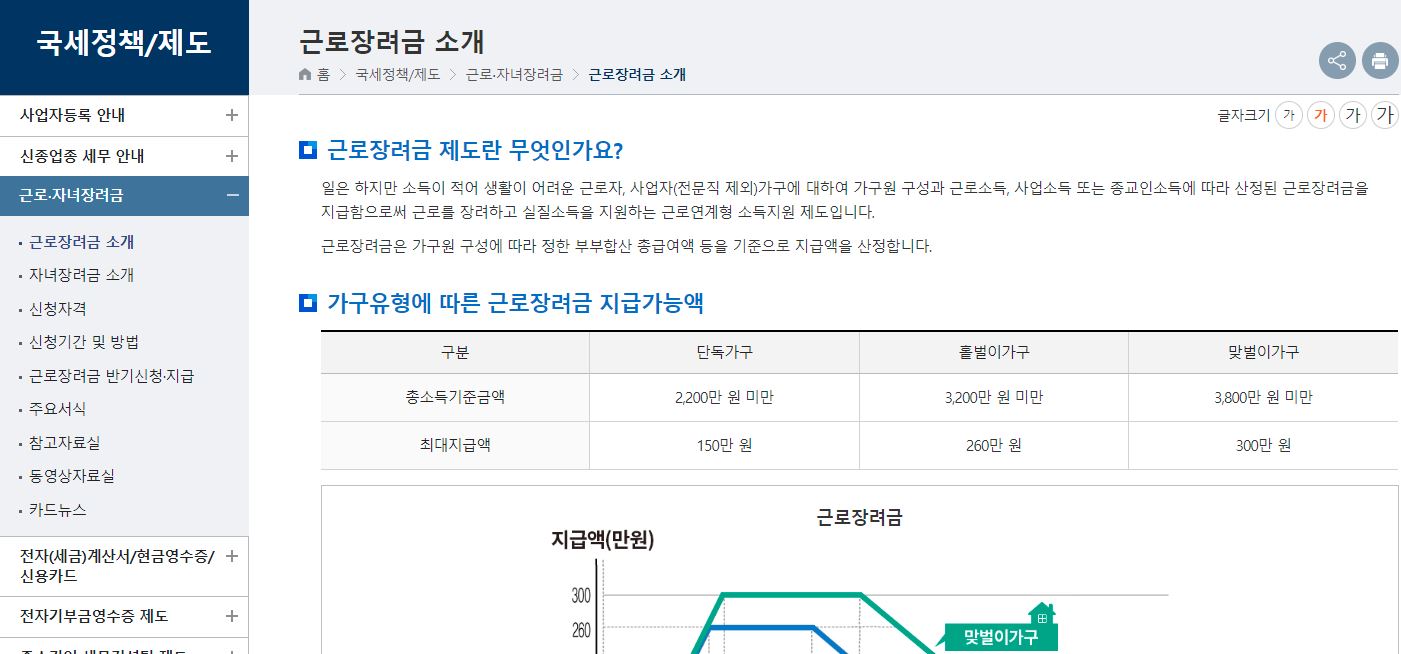 이 외에도 각종 세무신고도 이곳에서 할 수 있구요. 근로장려금, 자녀장려금 신청을 할 수 있습니다. 이번 글에서는 국세청 홈택스에서 근로장려금에 대해 그리고 근로장려금 지급일에 대한 정보를 말씀드리겠습니다.