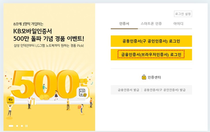 국민은행 금융인증서(브라우저 인증서) 발급 방법