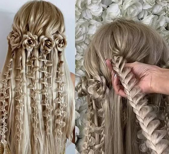 ▲ 정성이 가득 들어간 꽃모양의 머리 스타일이에요. 엄청난 시간을 인내할만한 가치가 있어 보입니다. 마치 판타지 영화의 여주인공 같은 느낌입니다.