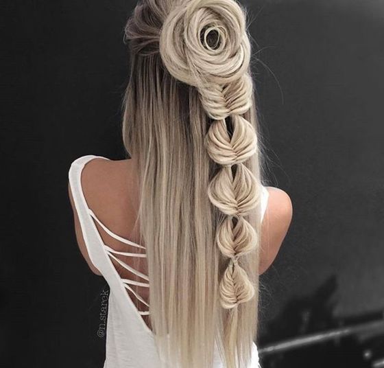 ▲ 정성이 가득 들어간 꽃모양의 머리 스타일이에요. 엄청난 시간을 인내할만한 가치가 있어 보입니다. 마치 판타지 영화의 여주인공 같은 느낌입니다.