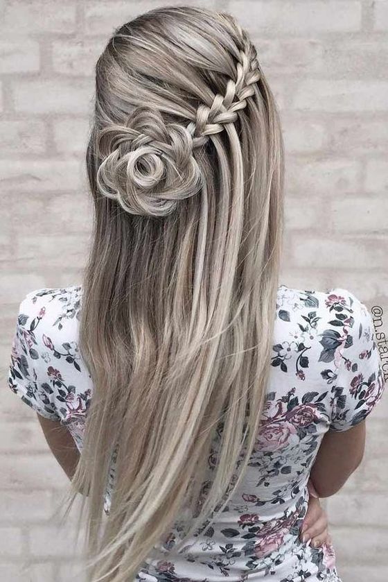▲ 마치 꽃모양 가발을 붙인 것 같지만 실제로 머리카락을 스타일링한 것입니다. 싱그러운 머리 땋기 모양으로 너무 사랑스러워 보입니다.