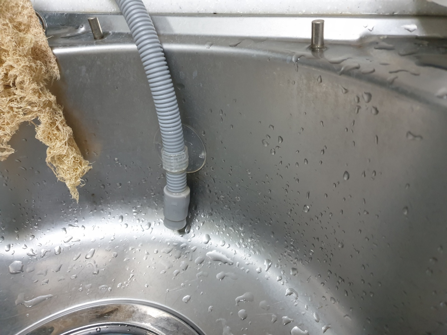 식기세척기 프리스탠딩은 빌트인에 비해 큰 단점이 하나 있습니다. 급수와 배수가 필요한데 급수를 위해서는 싱크 수전과 연결해야 하므로 식기 세척기부터 이 급수 배관까지 연결을 해야 합니다. 그래서 부득이하게 싱크대에 작은 구멍을 뚫어야 합니다. 그리고 배수도 필요합니다. 배수는 식기세척기부터 배관을 빼서 싱크볼로 유도합니다.