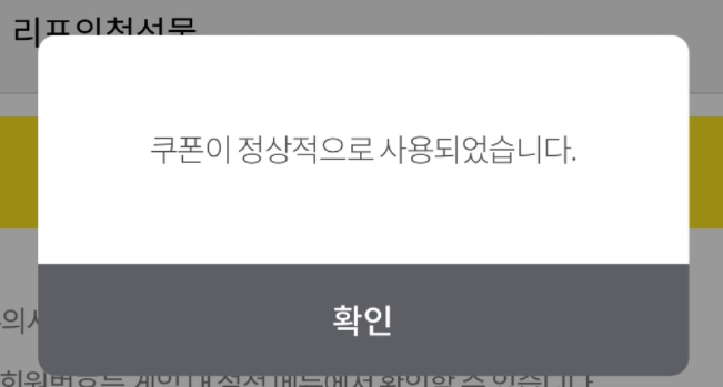 쿠폰이 제대로 입력되면 아래와 같이 정상적으로 등록되었다는 표시가 나옵니다.