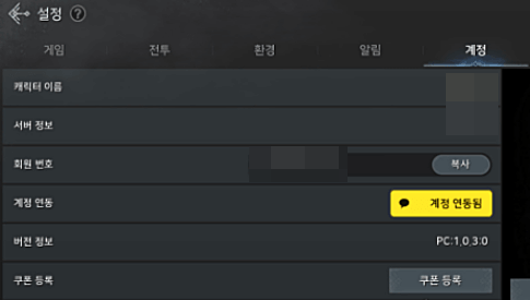 쿠폰 입력은 게임속에서 우측 메뉴 -> 설정 -> 계정을 차례대로 클릭하면 쿠폰 등록 메뉴가 나옵니다. 쿠폰 등록에서 쿠폰 코드인 '리프의첫선물'을 입력하시면 됩니다.