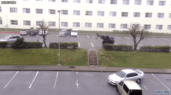 비가 쓸리듯 내리고 주차되어 있던 차는 데굴데굴 구릅니다.