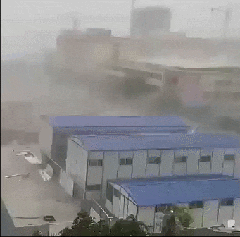 조립식 건물들이 마치 장난감마냥 부서지고 날아가고 있습니다.