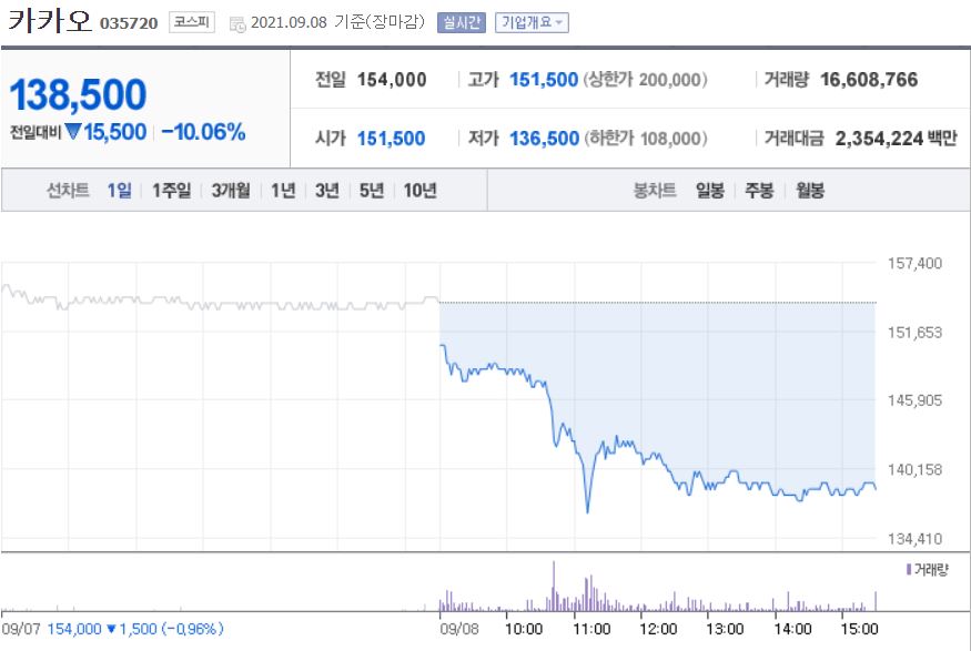 카카오 주가 하루만에 10% 넘게 폭락한 이유