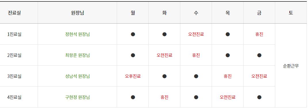 주요 진료 일정은 아래에서 확인해 보세요.