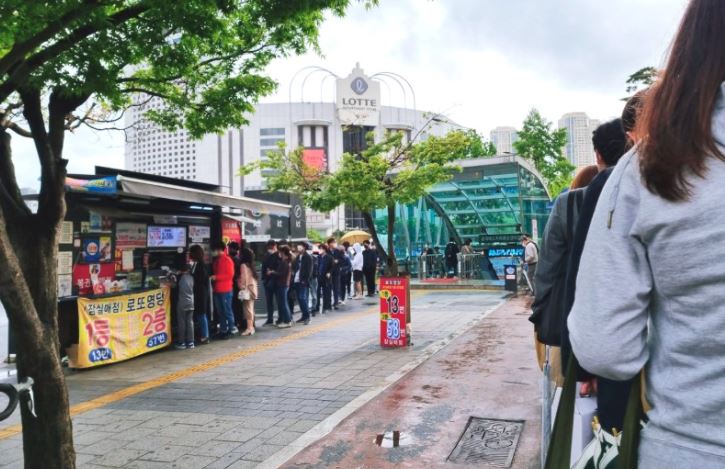 그런데 요즘 들어 로또 1등 당첨자보다 더 부러운 사람이 보이고 있습니다. 바로 로또 명당 판매점 주인입니다. 제가 자주 구입하는 로또 판매점은 잠실역 8번 출구 앞 가판입니다. 1등 당첨이 15번 정도 된 곳입니다. 그래서 그런지 금요일, 토요일만 되면 로또를 사려는 사람이 줄을 섭니다.