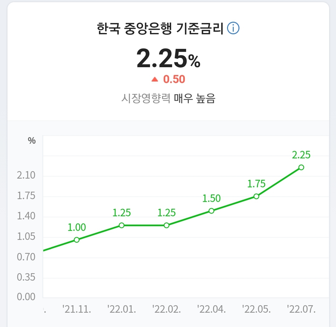 한국은행 기준 금리가 미친 듯이 빠르게 오르고 있습니다. 7월 중순 기준금리가 2.25%입니다. 코로나 때 풀린 통화량을 회수하기 위한 금리 상승기라고는 하지만 역대급으로 빠른 증가세가 아닌가 싶습니다. 이 시기에 주식투자법에 대해 얘기해보겠습니다. 그리하여 조금이나마 손실을 줄일 수 있도록 가이드를 제공하고자 합니다.