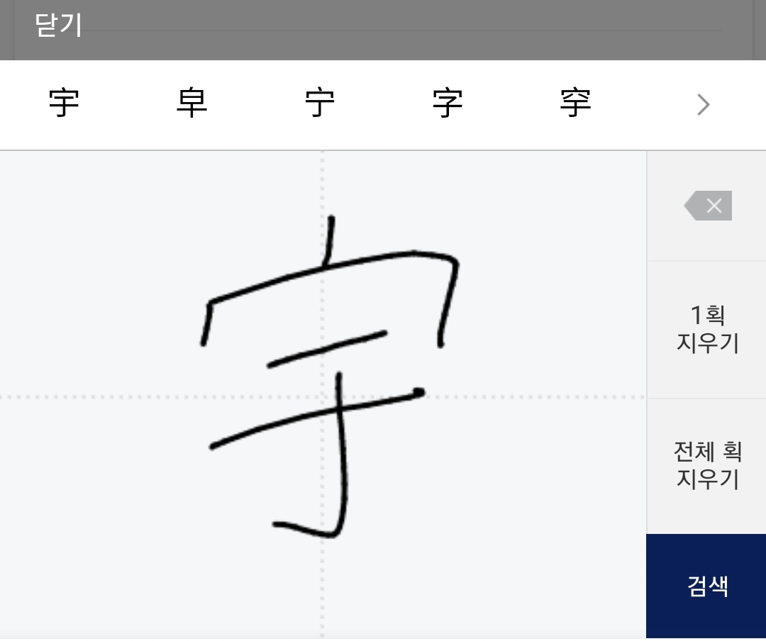 획을 쓸 때마다 적합한 한자를 자동으로 찾아줍니다. 본인이 찾으려는 한자를 클릭해보세요.