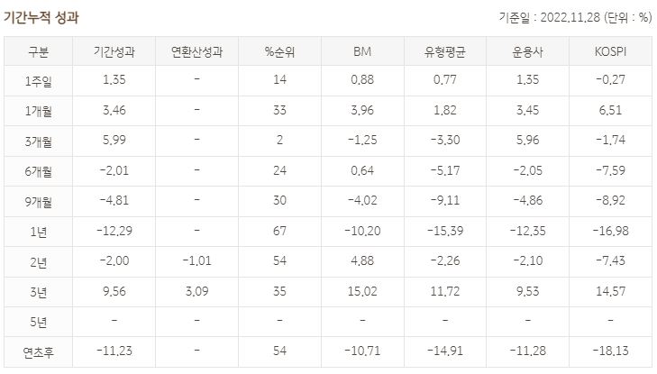 이 펀드는 2022년 11월 현재 약 1,645억원의 운용규모를 갖춘 상품입니다. 운용사는 KTB자산입니다. 펀드 상품의 기본 정보는 아래와 같습니다.