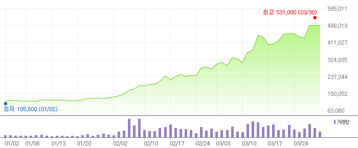 아래는 에코프로의 일간, 3개월 주식 변동 차트입니다.