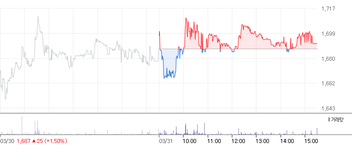 웅진 주당 가격은 2023.03.31 기준(장마감)으로 1,691원입니다. 전일에 비해 4원 상승한 금액입니다. 웅진의 시가총액은 1,352억원입니다. 웅진의 거래량은 470,258건이고, 거래대금은 총 795백만원입니다.