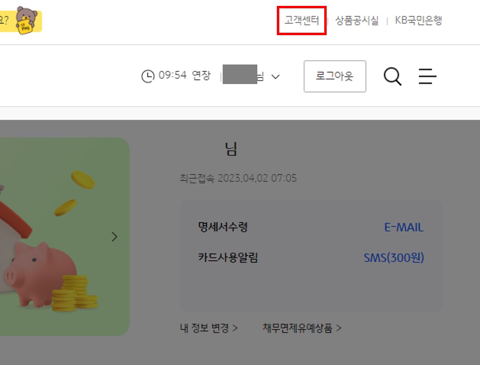 국민카드 고객센터 이동하기