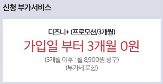- 신청 혜택: 디즈니플러스 3개월 무료 체험(3개월 후 자동 유료 전환, 3개월 이용 후 유료 전환 전에 해지 가능합니다.)