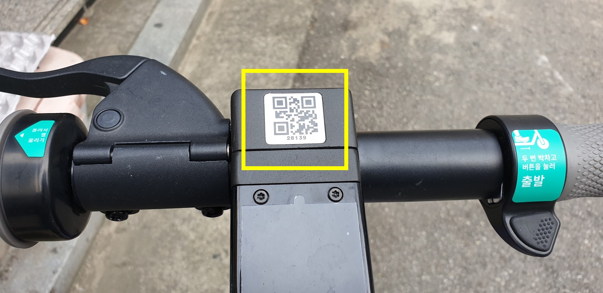 그 다음 아래와 같이 QR코드 스캔하기 화면이 나오는데 BEAM 킥보드 손잡이 쪽에 보면 있는 QR코드를 화면에 네모 공간에 맞춥니다.